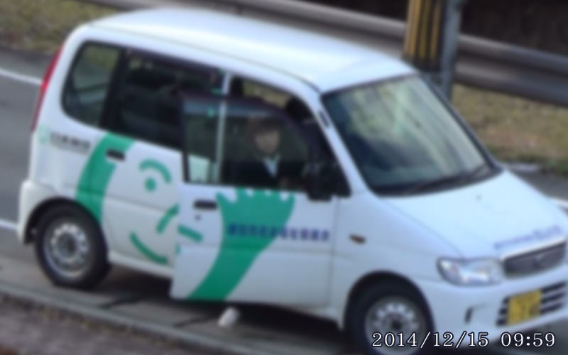 撮影中に高確率で出現(通過)する介護施設の車両と生協のトラック。