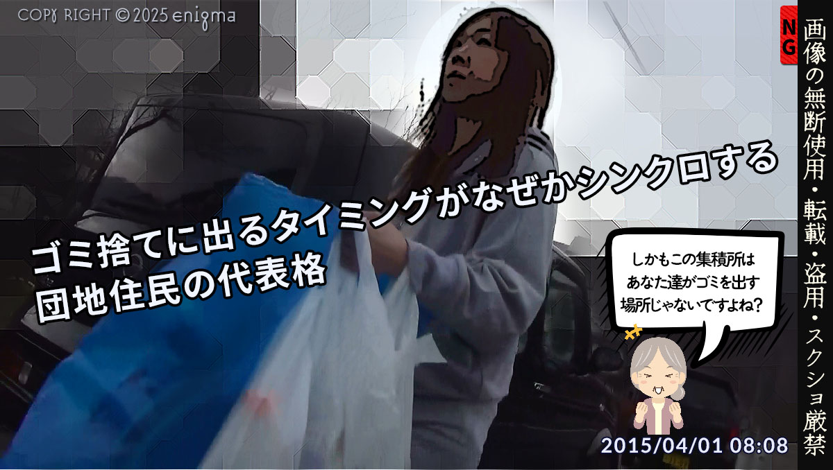怪しい業者のことや、●号棟の人達が割り当て外のゴミ集積所を使っていることなど、以前、スペースでも喋っていますのでよかったら聞いてください。