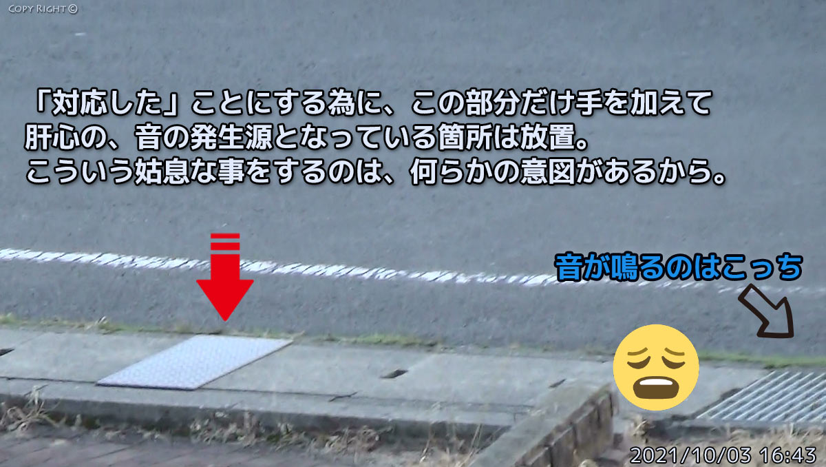 他にも、私が側溝の蓋のことで相談した時も対応を渋っていたのに、なぜ今回は“迅速に”対応されたのでしょうかね。