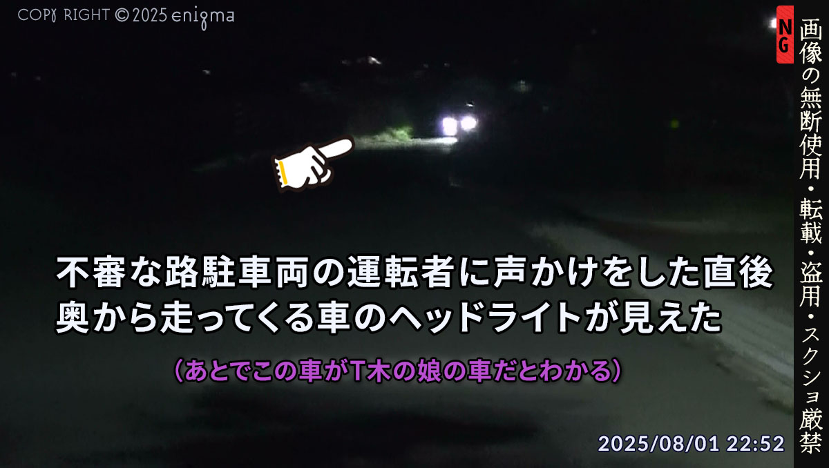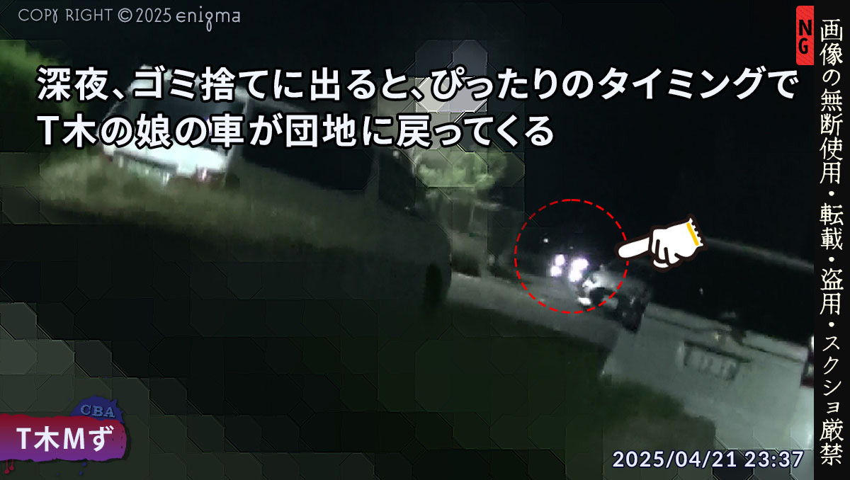 4/21と8/1にゴミ出しに出た際にT木の娘を呼び止めて、「いつもこういうタイミングで出入りするけどおかしくないか?」と声をかけたのです。
