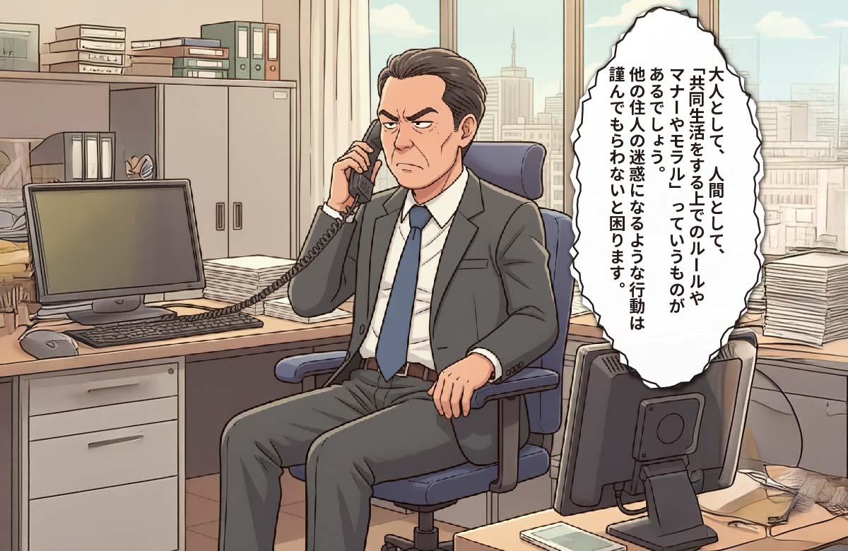 電話の向こうから「共同生活をする上でのルールやマナーやモラル」を守るのは大人として当たり前であり、私がそうしたルールを守れない身勝手な“迷惑系”住人であるかのように非難する担当の男性。