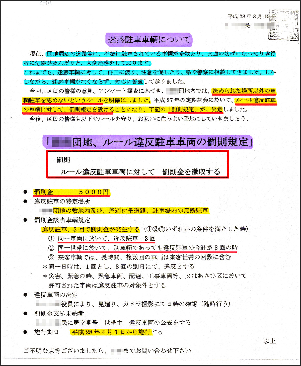 罰金の徴収もしていないというので、なぜ徴収しないのかと聞けば「権限がない」と宣う。だったらなんでこんな通知を出したのかと呆れてしまうレベルの自治会の存在意義が、最早わからない。