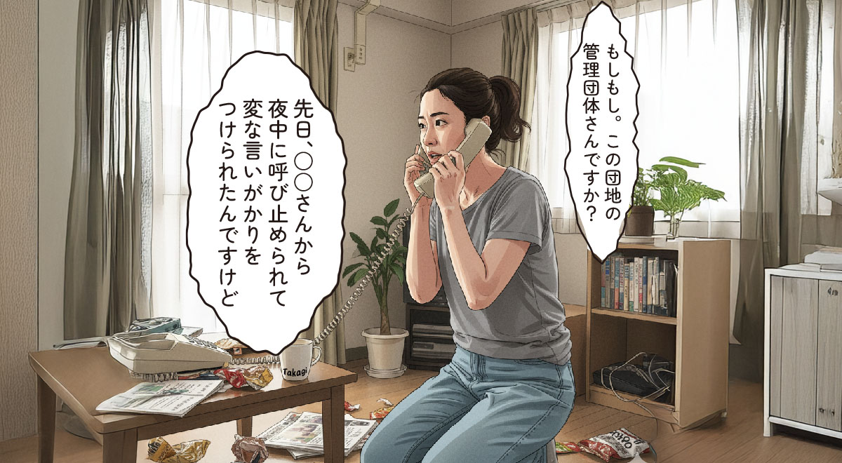 それをT木が「(私に)言いがかりを付けられた」などと団地管理団体に通報したため、管理団体から電話がかかってきたのです。